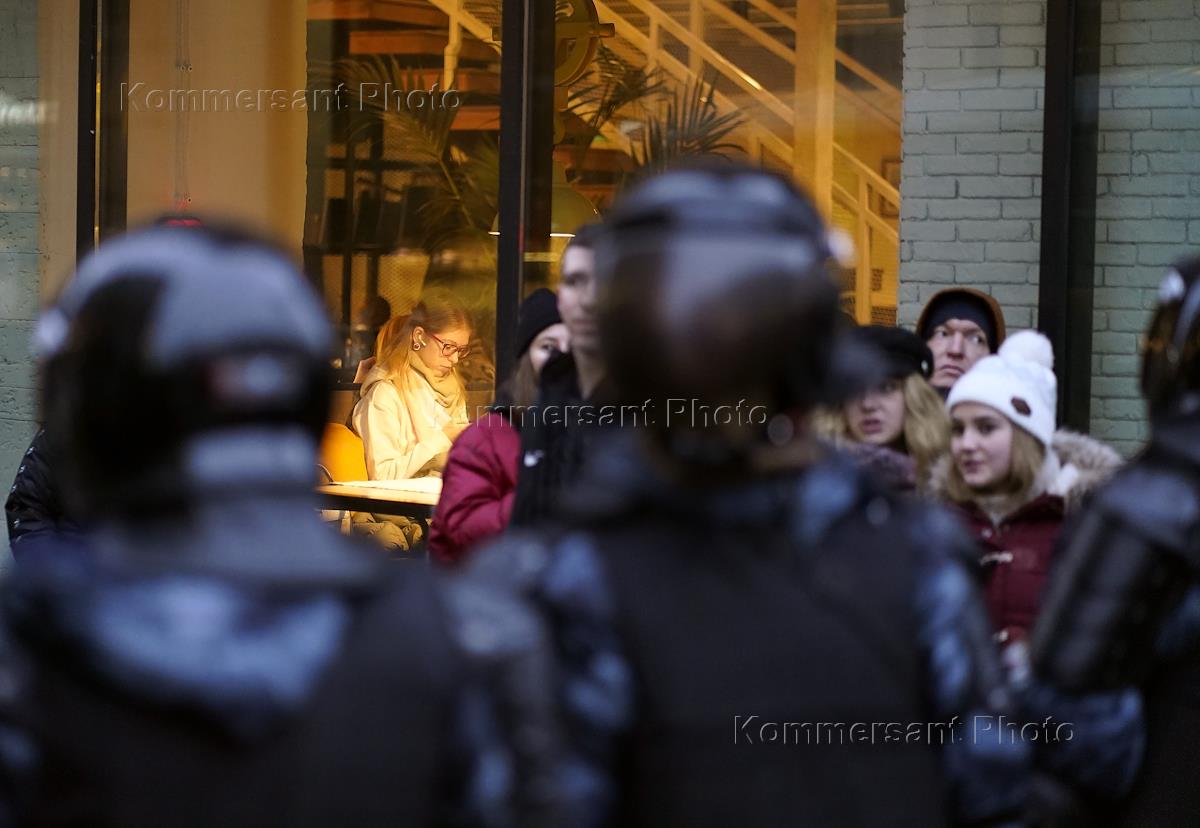 Акция в поддержку задержанного оппозиционера Алексея Навального на Пушкинской площади. Сотрудники…