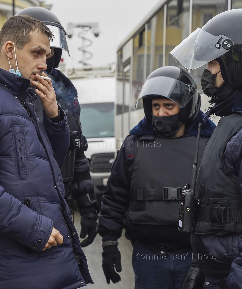 Акция в поддержку задержанного оппозиционера Алексея Навального в центре города. Сотрудники полиции…