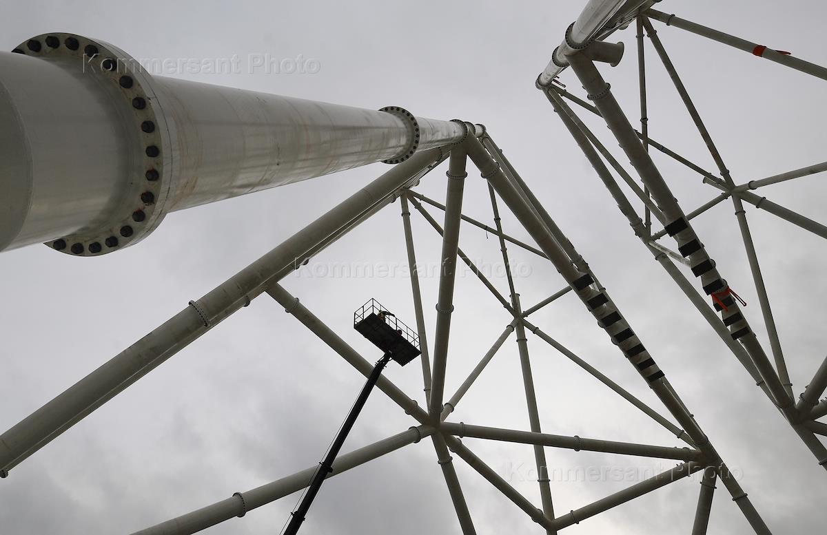 Виды Москвы. Жанровая фотография. Монтаж колеса обозрения "Солнце Москвы" на ВДНХ.