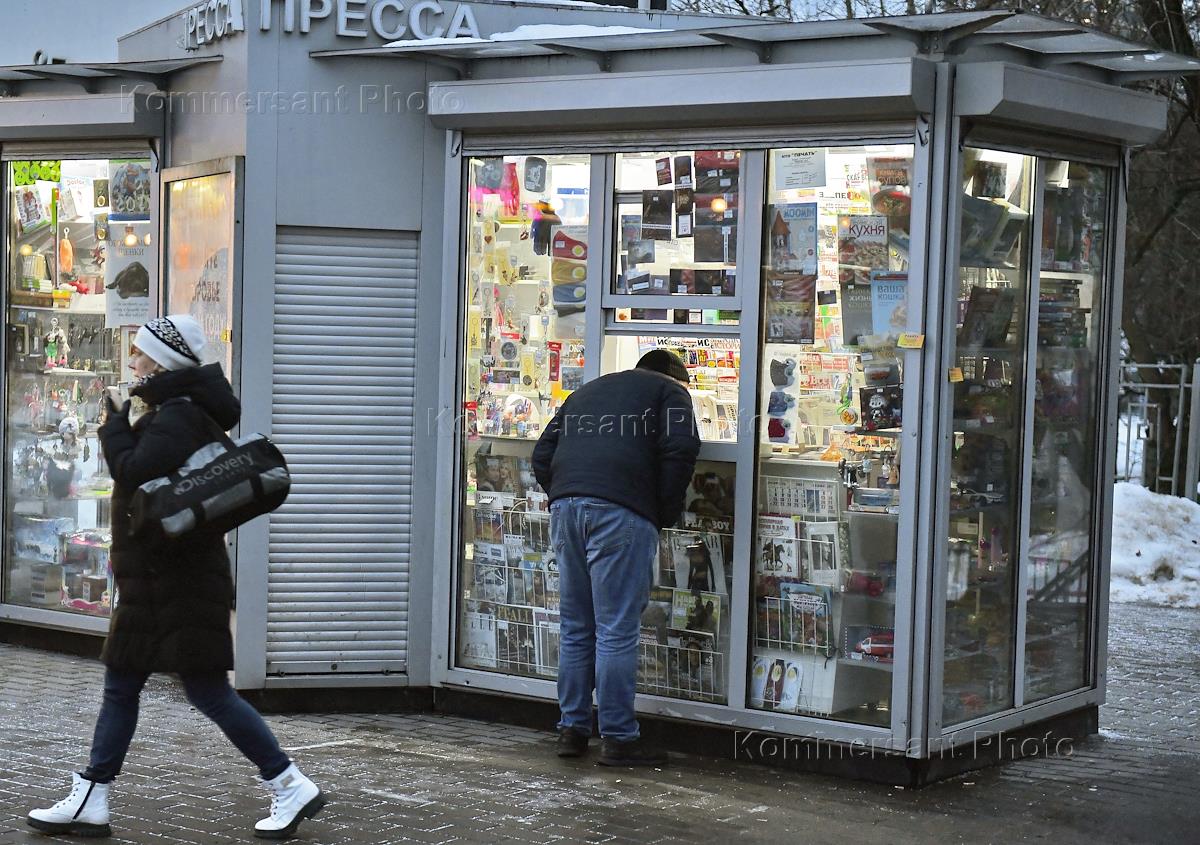 Виды Москвы. Жанровая фотография. Покупатель у киоска Роспечати.