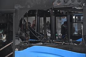 Последствия возгорания автобуса №т72 (производства ПАО "КАМАЗ") на улице Наметкина около станции…