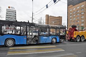 Последствия возгорания автобуса №т72 (производства ПАО "КАМАЗ") на улице Наметкина около станции метро Новые Черемушки.