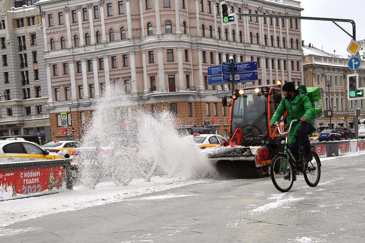 Виды Москвы. Жанровая фотография. Снегоуборочная техника во время уборки улицы после снегопада.