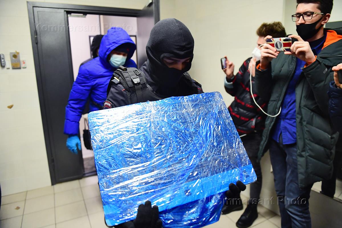 Обыск в квартире супруги политика Алексея Навального Юлии Навальной. Сотрудник полиции выносит…