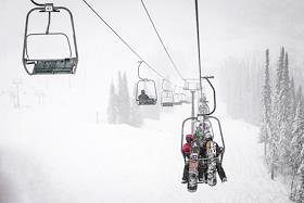 Виды Кемеровской области. Горнолыжный курорт "Шерегеш". Отдыхающие на канатной дороге.