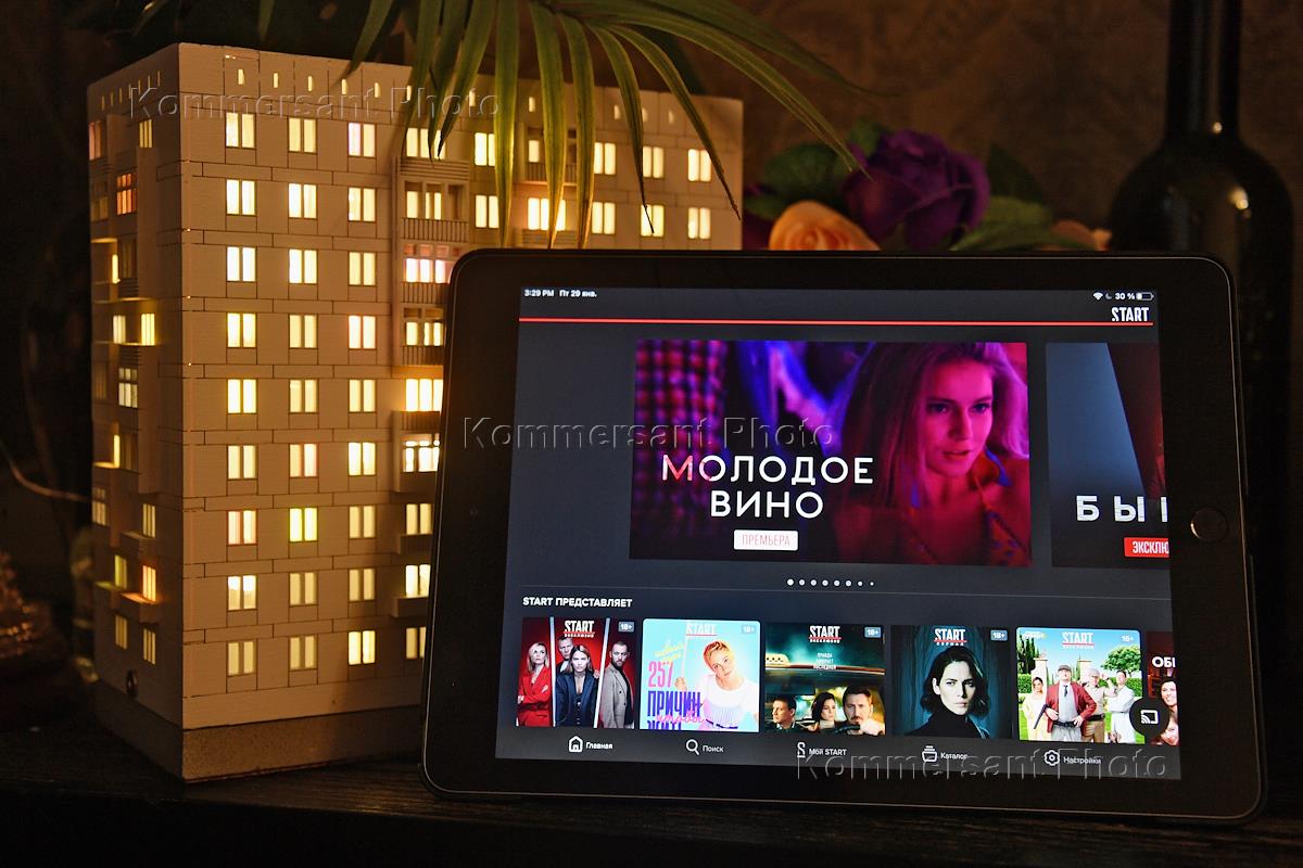 Жанровая фотография. Изображение платформы для просмотра фильмов start.ru на мониторе компьютера.