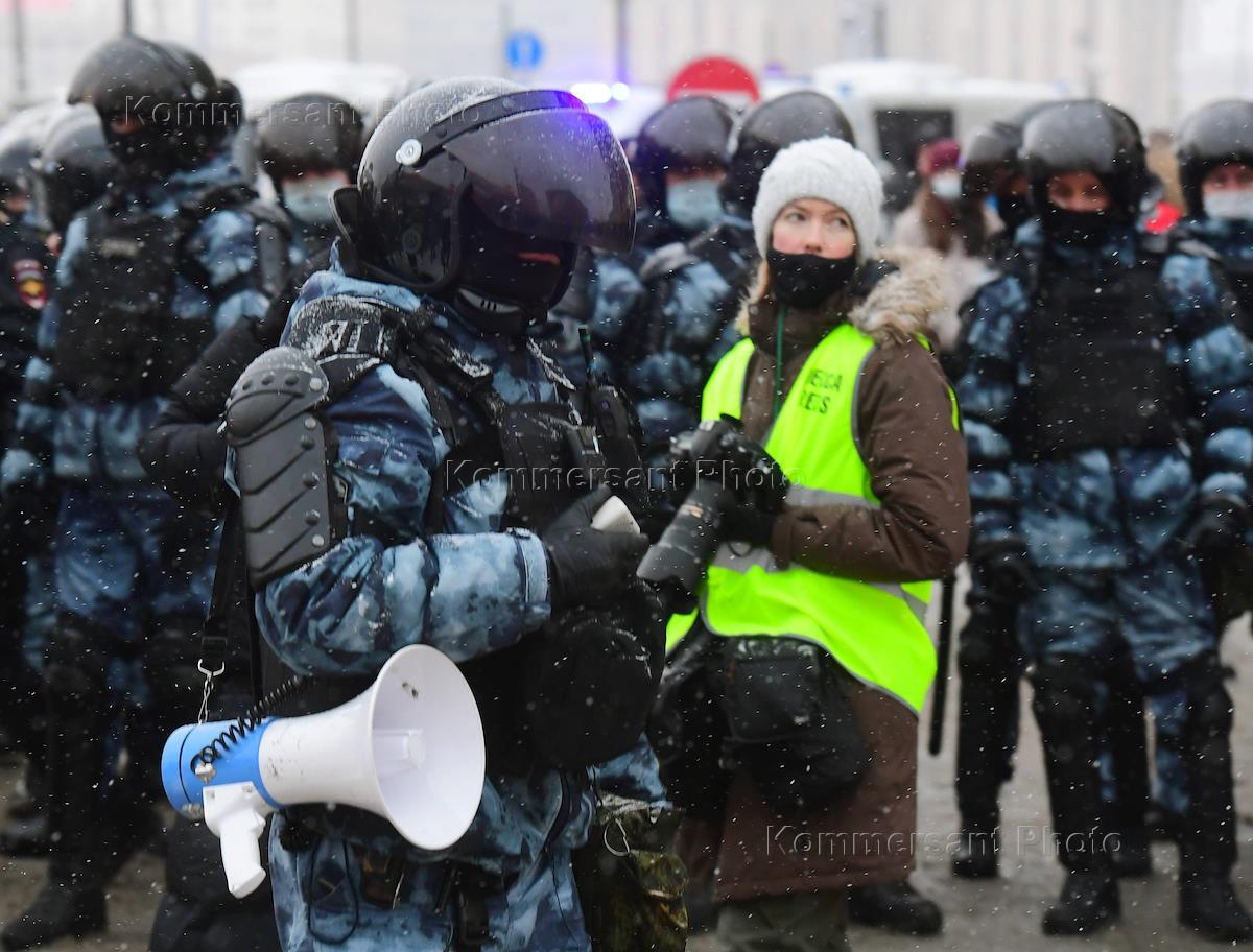 Несогласованная акция сторонников политика Алексея Навального в Москве. Сотрудники полиции во время…