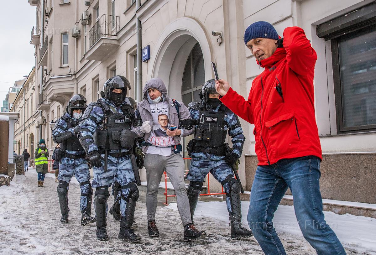 Несогласованная акция в поддержку задержанного оппозиционера Алексея Навального в Москве. Сотрудники…