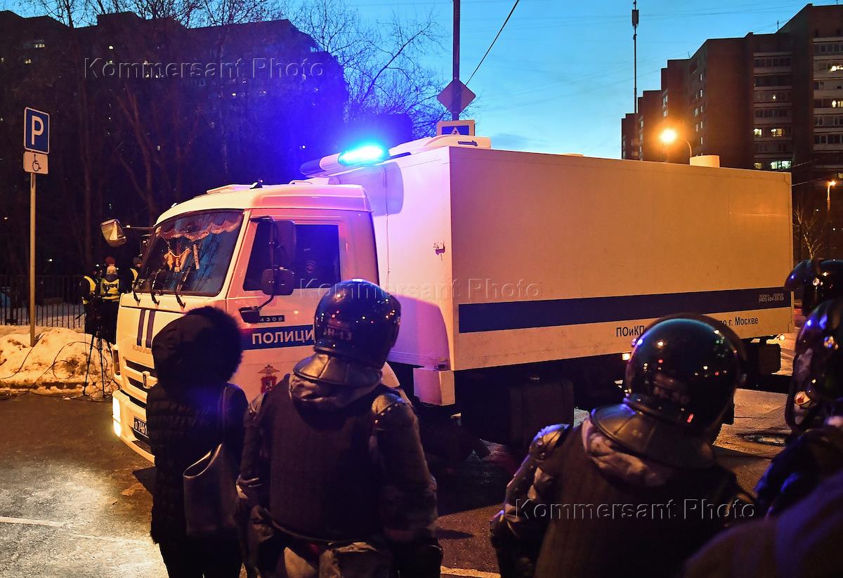 Правосудие Рассмотрение вопроса замены наказания оппозиционеру Алексею Навальному в виде 3,5 года лишения свободы условно на реальный срок заключения в рамках уголовного дела "Ив Роше" в Московского городского суда. Сотрудники полиции в оцеплении у станции метро "Преображенская площадь" вблизи которой ожидается акция в поддержку Алексея Навального.