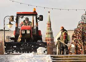 Уборка снега на улицах Москвы.