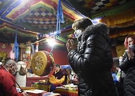Обряд Дугжууба, обряд очищения, накануне празднования Сагаалгана (Цагаан сар) (Буддийский Новый год) в Ринчин дацане в Новосибирске.