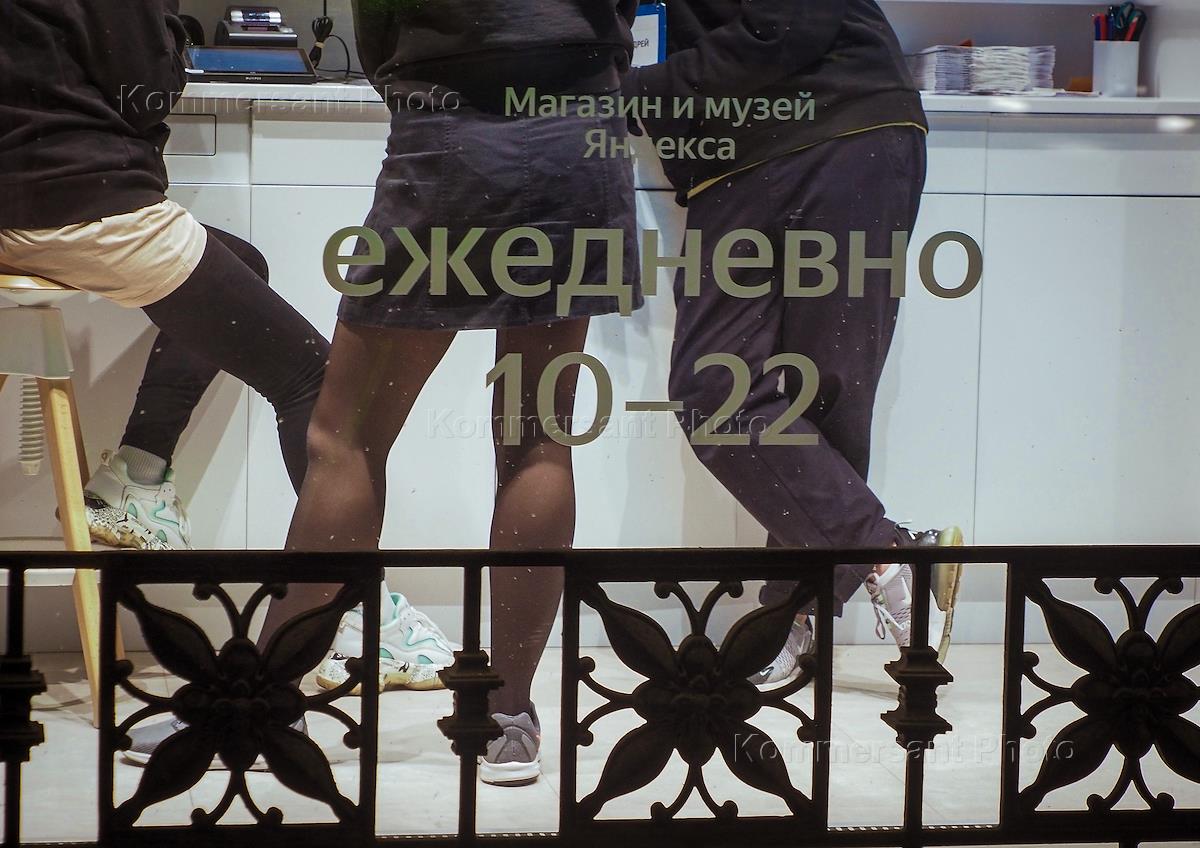 Виды Санкт-Петербурга. Жанровая фотография. Вывеска "Магазин и музей Яндекса" на витрине.