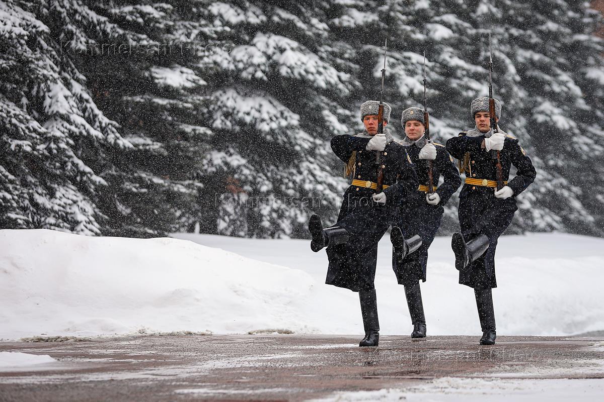Виды Москвы во время снегопада. Жанровая фотография. Военнослужащие Роты почетного караула во время…