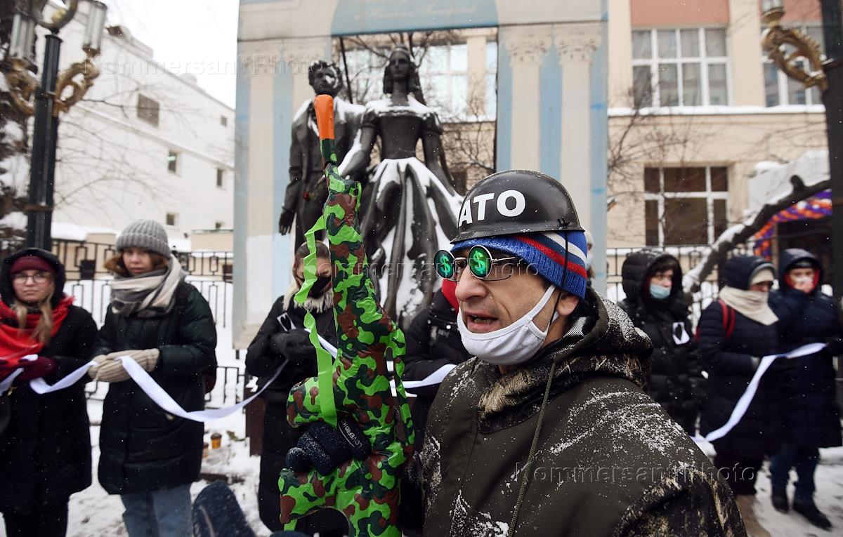 Акция солидарности с Юлией Навальной у памятника А.С.Пушкину и Н.Гончаровой на Старом Арбате.