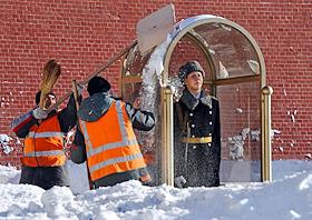 Жанровая фотография. Ликвидация последствий снегопада. Сотрудники коммунальных служб во время уборки…