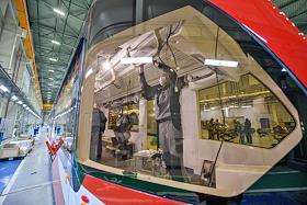 Экономика и бизнес Невский завод электрического транспорта. Сборка низкопольных вагонов для трамвая Витязь-М и Богатырь-М на Невском заводе электрического транспорта.