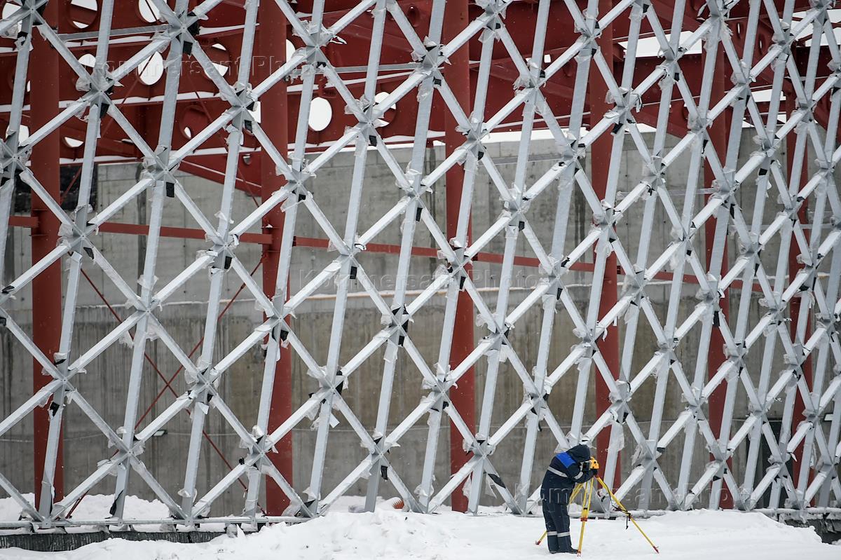 Жанровая фотография. Каркас будущего стеклянного фасада нового ЛДС (Ледовый дворец спорта)…