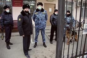 Жанровая фотография. Сотрудники полиции перед зданием Октябрьского районного суда.