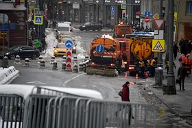 Виды Москвы. Жанровая фотография. Потепление на улице. Снегоуборочная техника во время уборки снега…