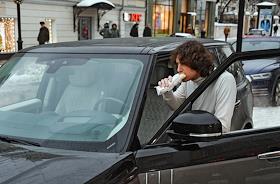 Жанровая фотография. Телеведущий Алексей Кузнецов ест шаурму у автомобиля.