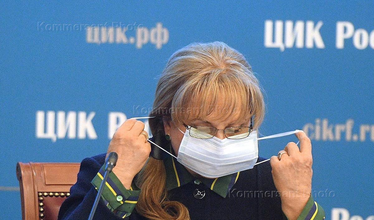 Председатель Центральной избирательной комиссии (ЦИК) РФ Элла Памфилова (на экране видеокамеры) во…