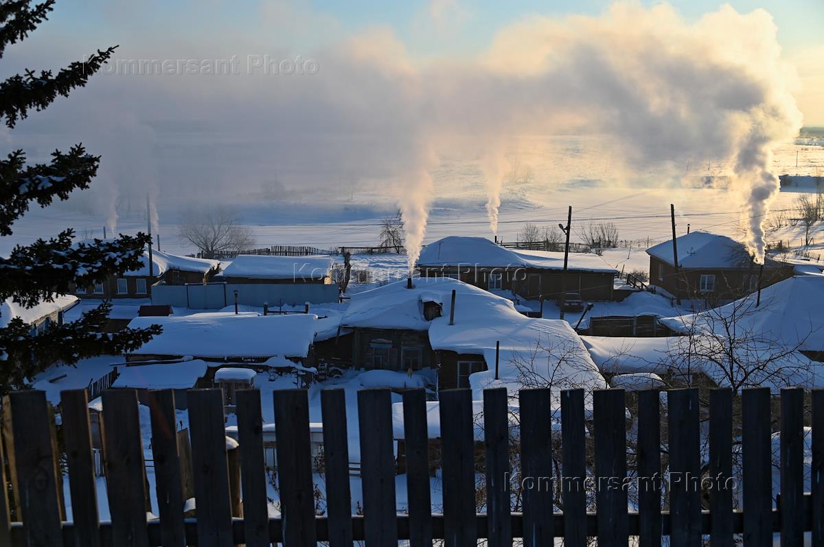 Виды города Тары. Жанровая фотография. Дым из труб домов частного сектора при морозе минус 38…