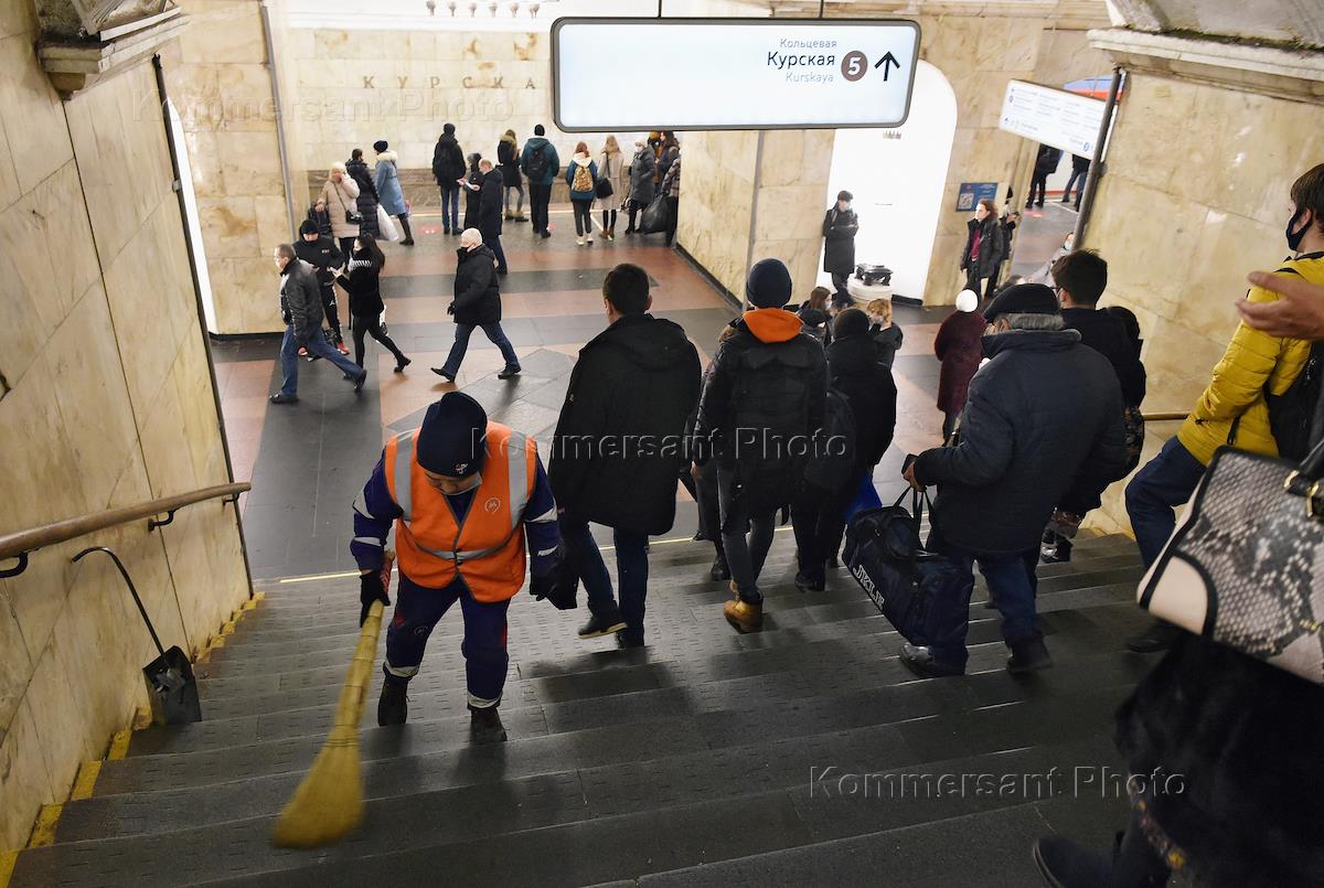 Жанровая фотография. Пассажиры на станции метро "Курская" Арбатско-Покровской линии.