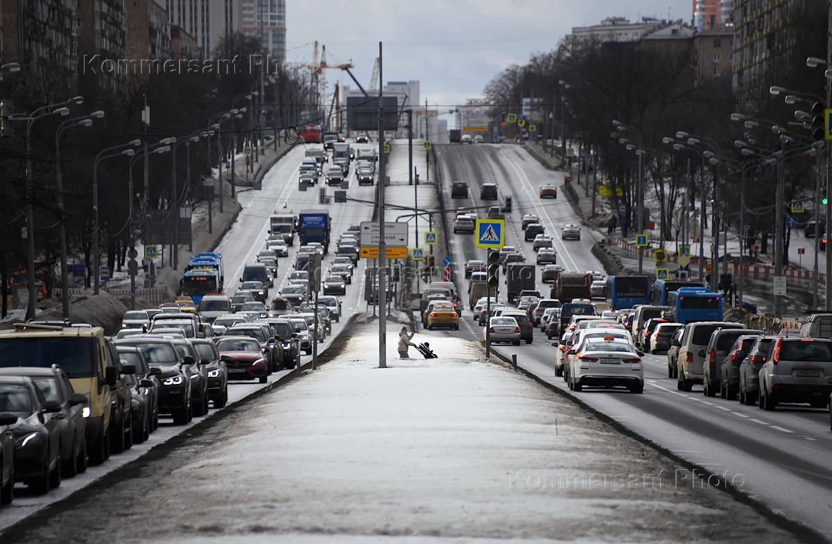 Виды Москвы. Ленинский проспект. Жанровая фотография. Снежные сугробы.