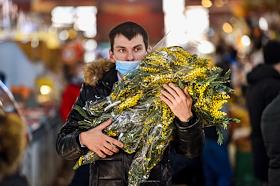 Жанровая фотография. Продажа цветов к 8 марта на Рижском цветочном рынке.