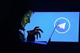 Кроссплатформенный мессенджер Telegram. Жанровая фотография. Маска Анонимуса и логотип Telegram на…