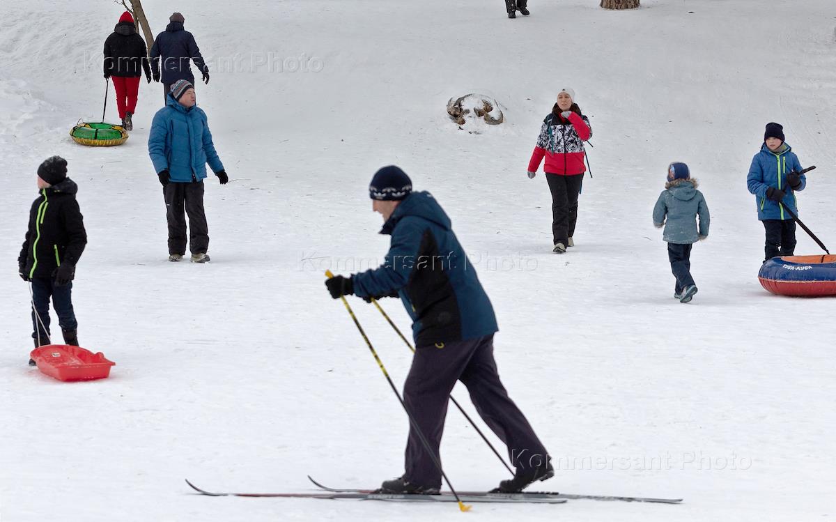 Празднование "Широкой Масленицы" в лесопарке Лебяжье. Жанровая фотография. Катание с ледяной горки.