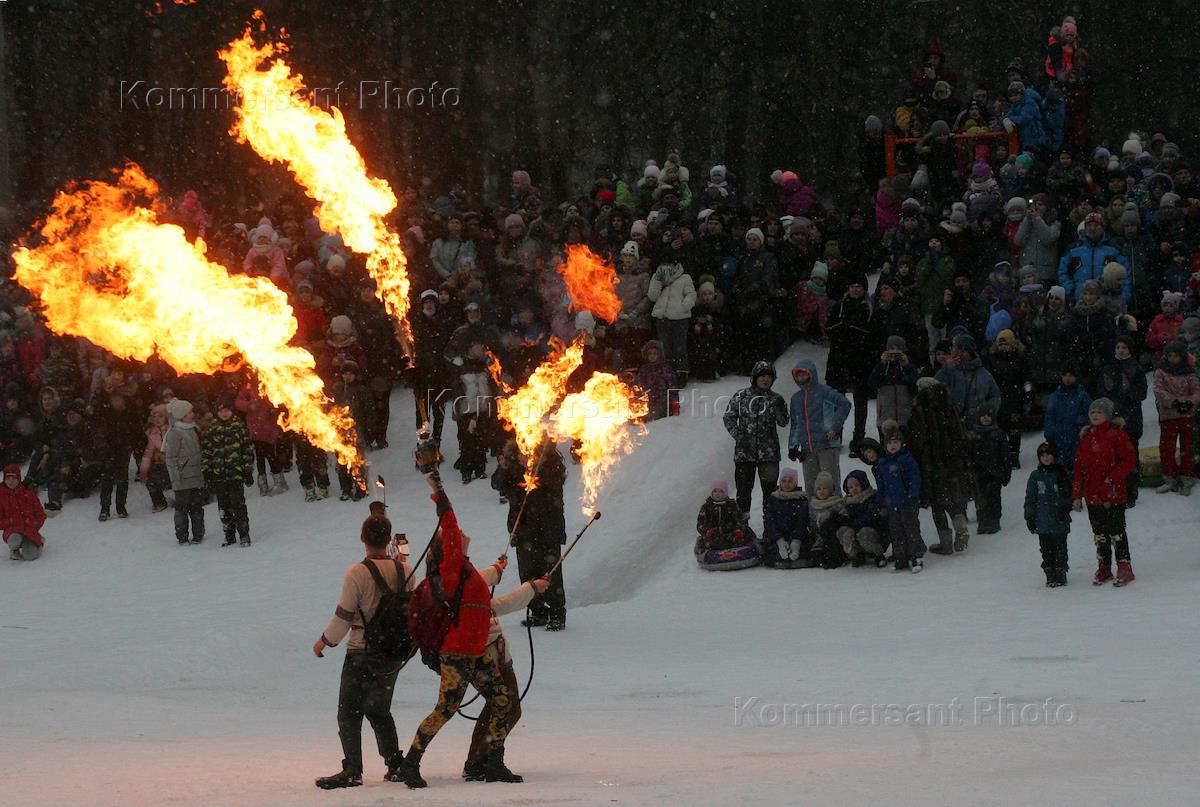 Празднование "Широкой Масленицы" в Нижнем Новгороде. Жанровая фотография. Фаер-шоу в Автозаводском парке.