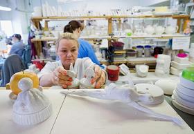 Императорский фарфоровый завод. Жанровая фотография. Сотрудник завода во время отливки изделий из…