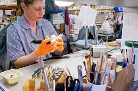 Императорский фарфоровый завод. Жанровая фотография. Сотрудник завода во время ручной росписи…