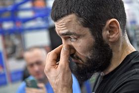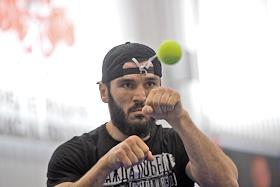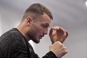 Боксер из Германии Адам Дайнес во время открытой тренировки перед боем с российским боксером Артуром…