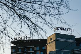 Виды Новосибирска. Жанровая фотография. вывеска - отель "Domina" ("Домина") и "Октябрьский дом…