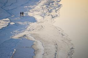 Виды Новосибирской области. Жанровая фотография. Начало весеннего ледохода на Оби. Люди гуляют на…