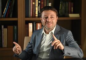 Совладелец "Совкомбанка" Сергей Хотимский во время интервью.