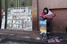 Виды Санкт-Петербурга. Жанровая фотография. Продавщица картин и сувениров для туристов.