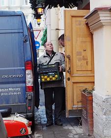 Виды Санкт-Петербурга. Жанровая фотография. Мужчина во время разгрузки автомобиля.