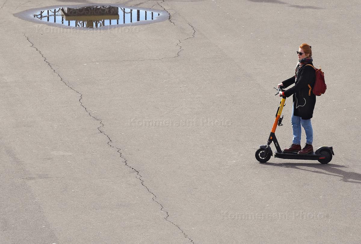 Виды Москвы. Жанровая фотография. Широкий тротуар для пешеходов в центре города.