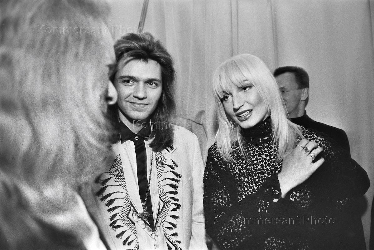 Конкурс красоты. Певцы Алла Пугачева (слева) и Филипп Киркоров (справа) перед началом конкурса.