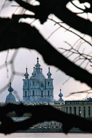 Виды Санкт-Петербурга. Вид на Смольный собор с набережной реки Невы.