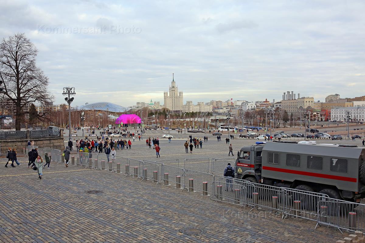 Виды Москвы. Жанровая фотография. Бетонные ограждения с цепями на Красной площади.