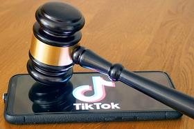 Жанровая фотография. Судейский молоток на экране смартфона с изображением заставки социальной сети…