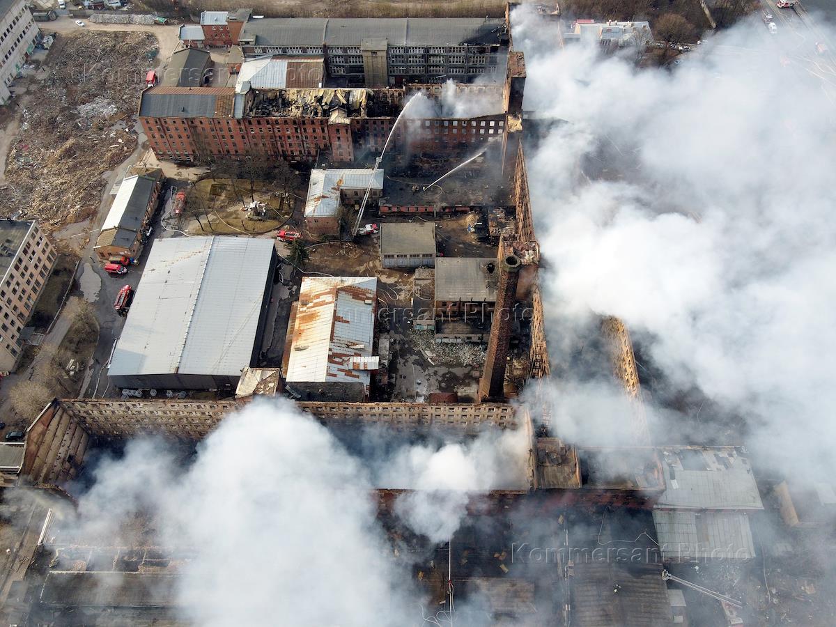 Последствия пожара в здании "Невская мануфактура" на Октябрьской набережной.