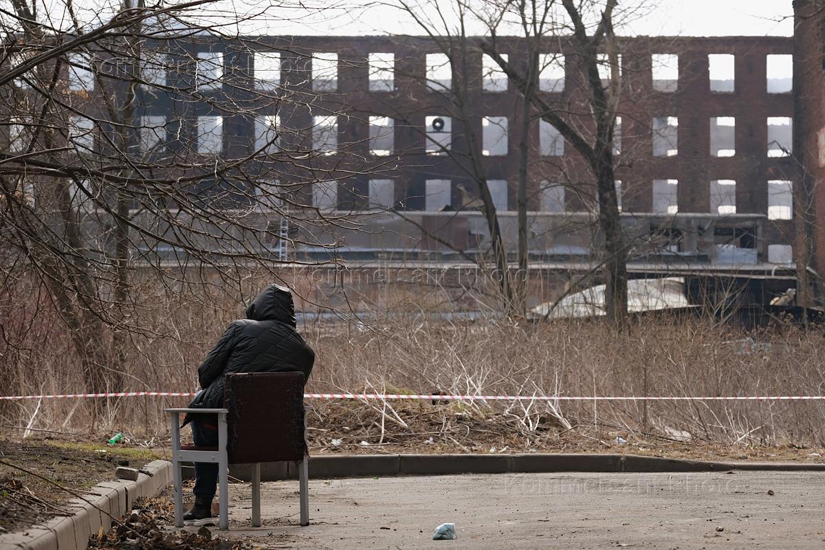 Последствия пожара в здании "Невской мануфактуры" на Октябрьской набережной. Жанровая фотография.