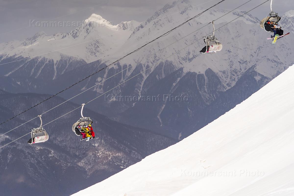 Виды горнолыжного курорта "Красная Поляна". Жанровая фотография. Подъемник.