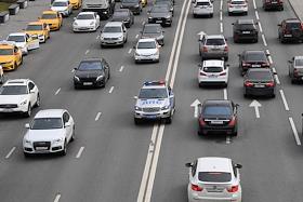 Виды Москвы. Автомобильное движение на Москворецкой набережной.