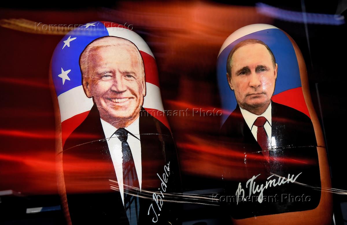 Жанровая фотография. Матрешки с портретами президента России Владимира Путина и президента США Джо…